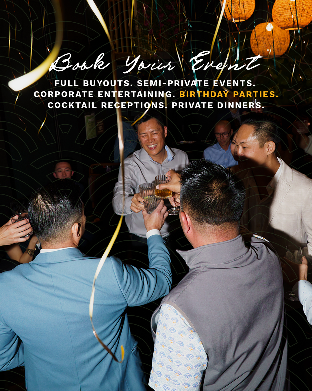 Customize your experience of large reservations, partial or full buyouts, and everything in between, with our event team to make a truly memorable event.