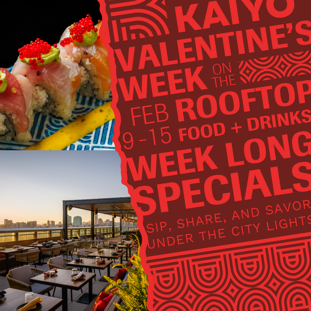 Celebrate Valentine’s Day all week long at Kaiyō Rooftop with a limited-time lineup of Valentine’s food and cocktail specials, available February 9–15. Set above the city, the Rooftop offers a more relaxed way to celebrate—perfect for date nights, after-dinner drinks, or a midweek Valentine’s plan. Enjoy shareable bites, seasonal dishes, and specialty cocktails created just for Valentine’s Week, paired with skyline views and tropical oasis vibes.